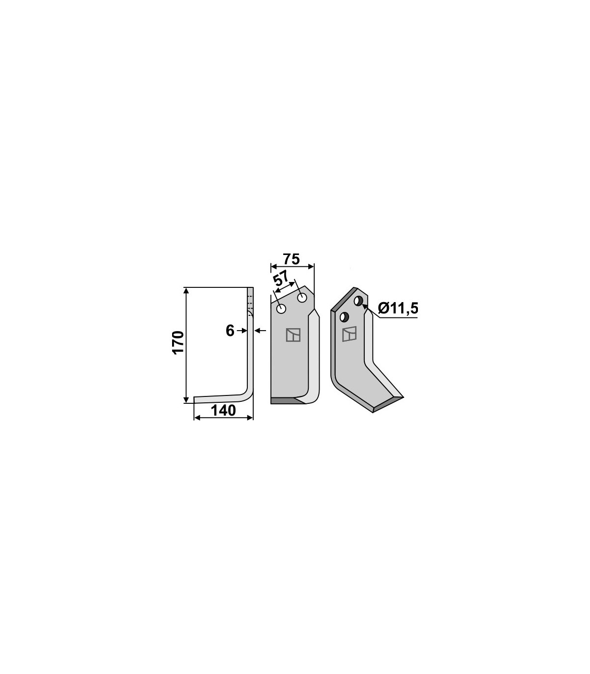 Jordfräskniv 170x75mm vä Howard