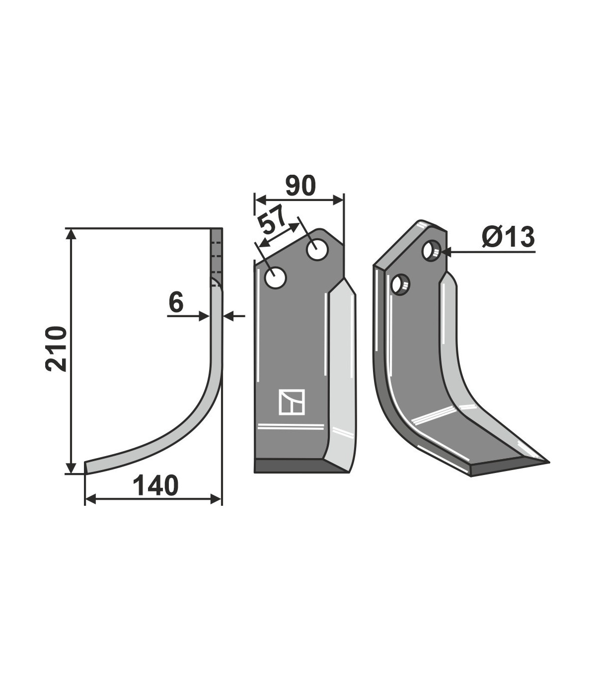 Jordfräskniv 210x90mm vä Howard